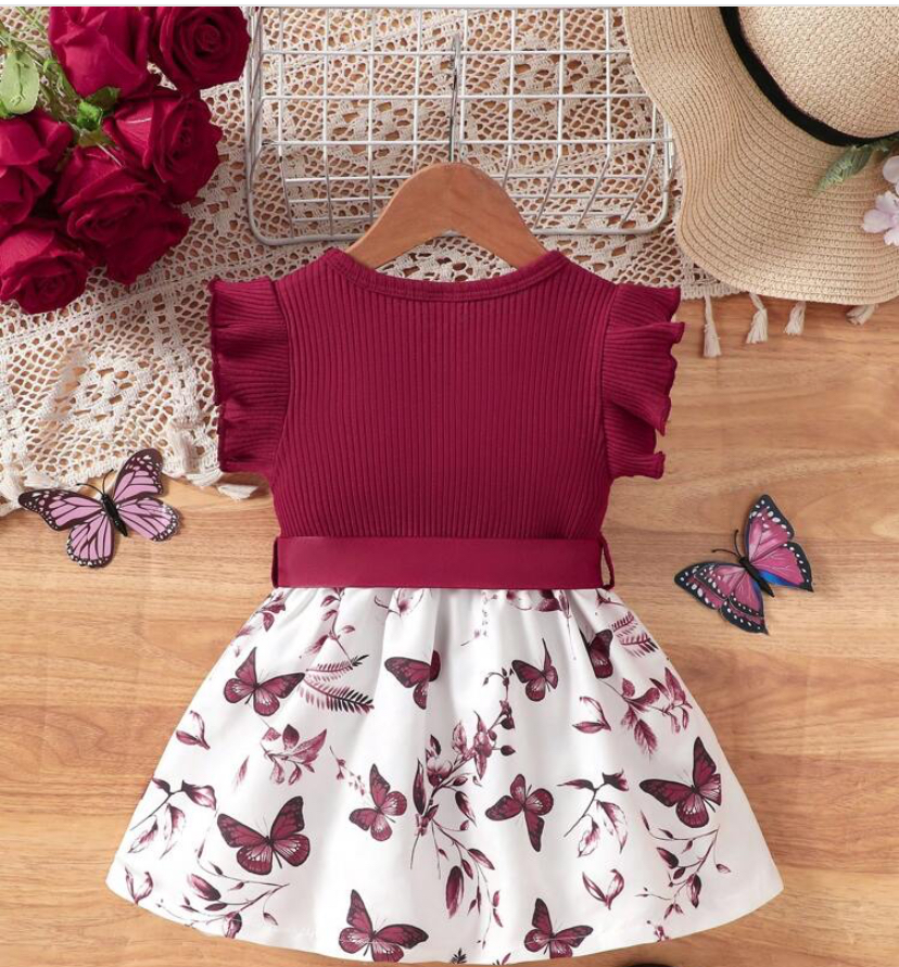 Shien baby girls casual everyday butterfly print dress with belt