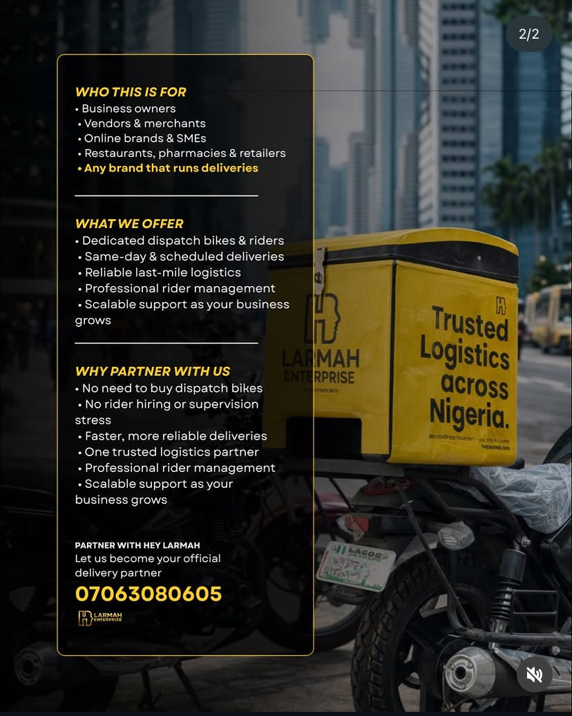 For pick ups amd deliveries contact hey_larmah on 07063080605