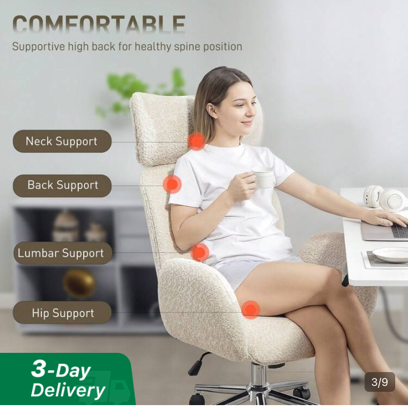 Homcom office chair with adjustable headrest spring pack curved line, swivel desk chair with high back chair