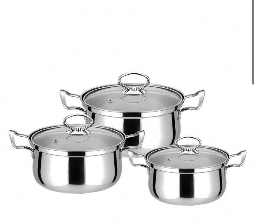 3 set stainless steel induction pot with glass lid