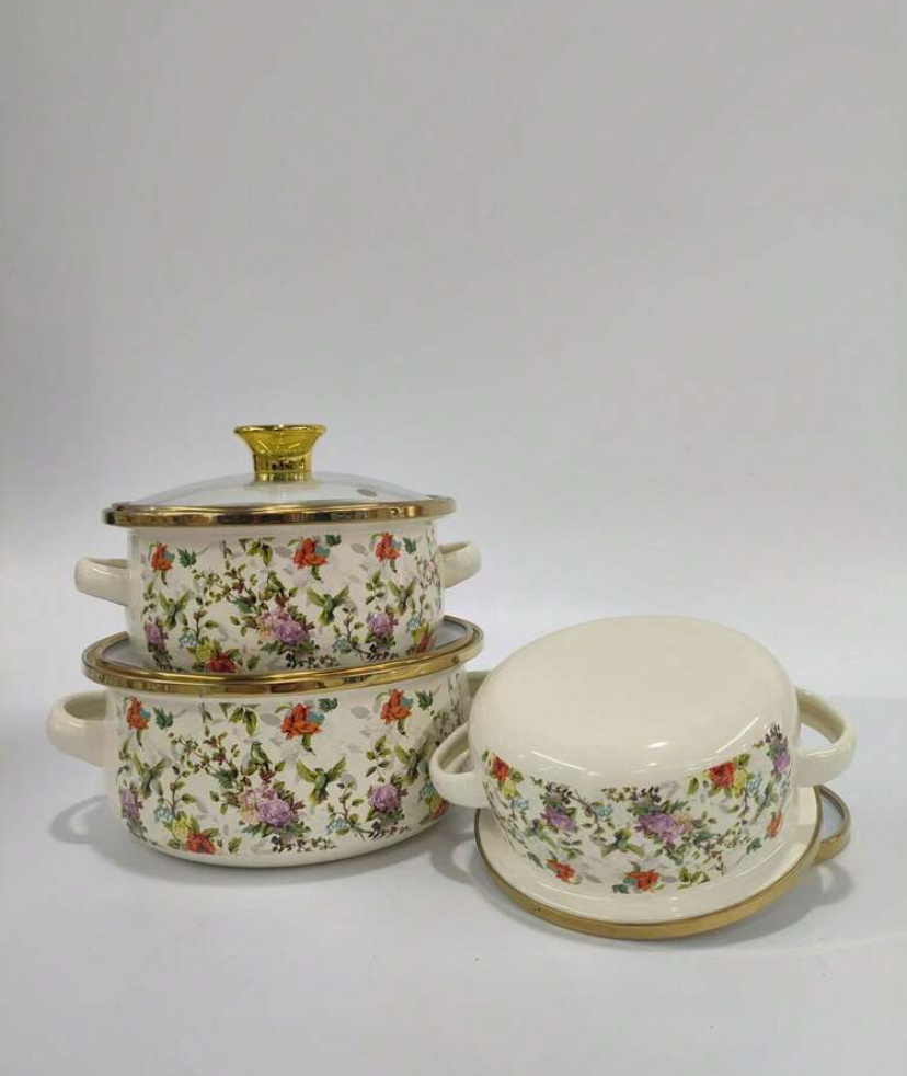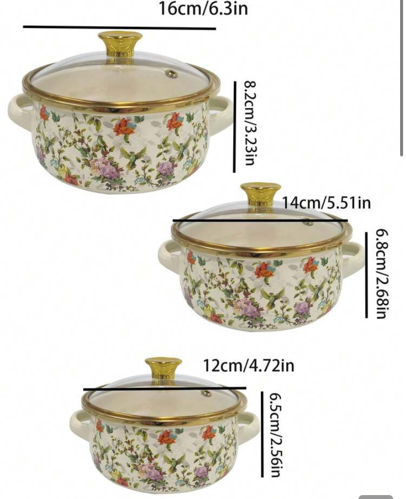 3 pcs multi color enamel ceramic double ear small pot with lid