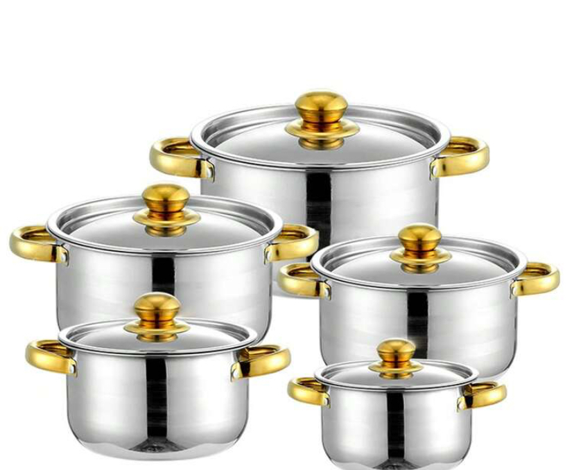 5pcs stainless steel cookware set which includes pots and lid for complete
