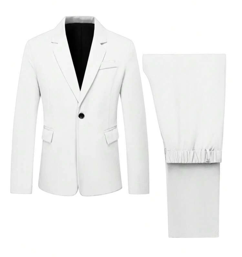 Manfinity mode men’s minimalist solid color suit jacket and trouser set