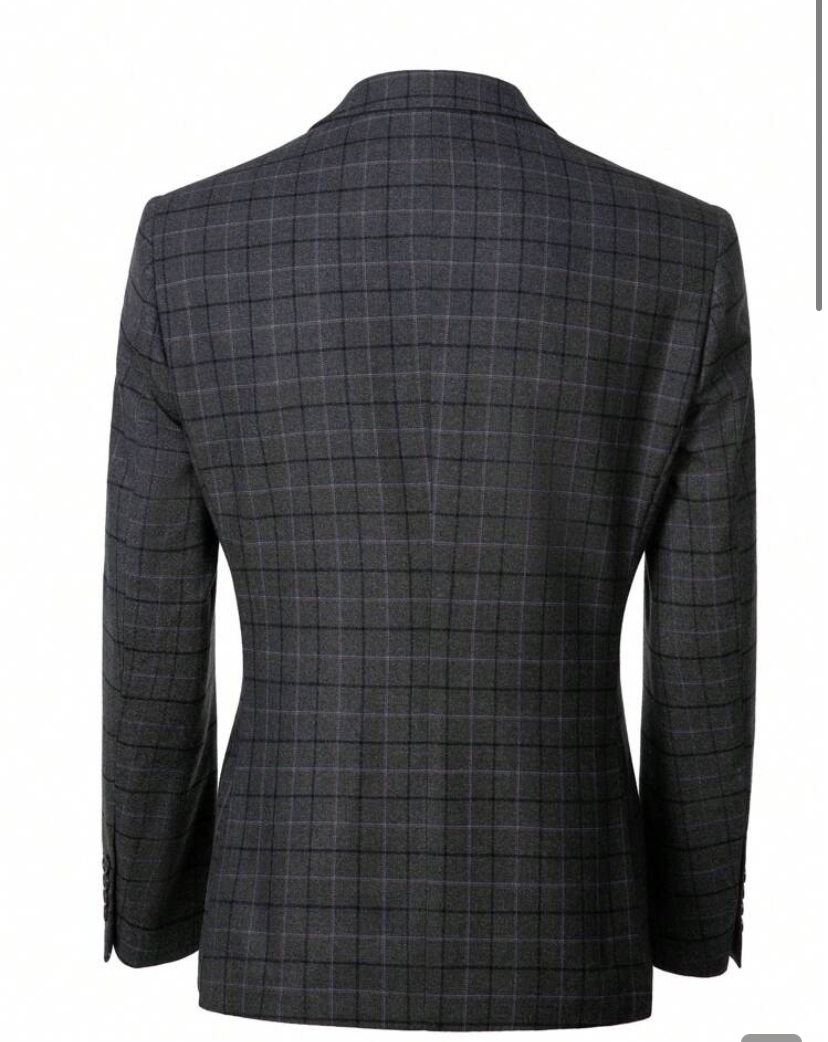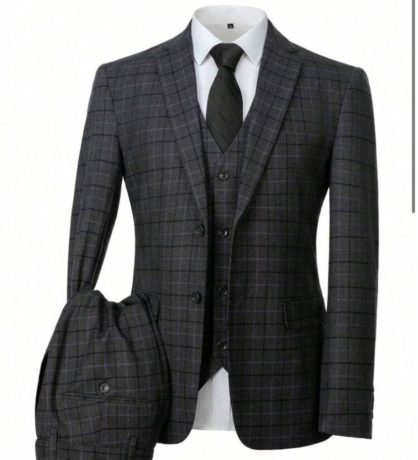Furuyal men’s suit plaid slim fit two button prom men 3 pieces suit blazer vest and pants