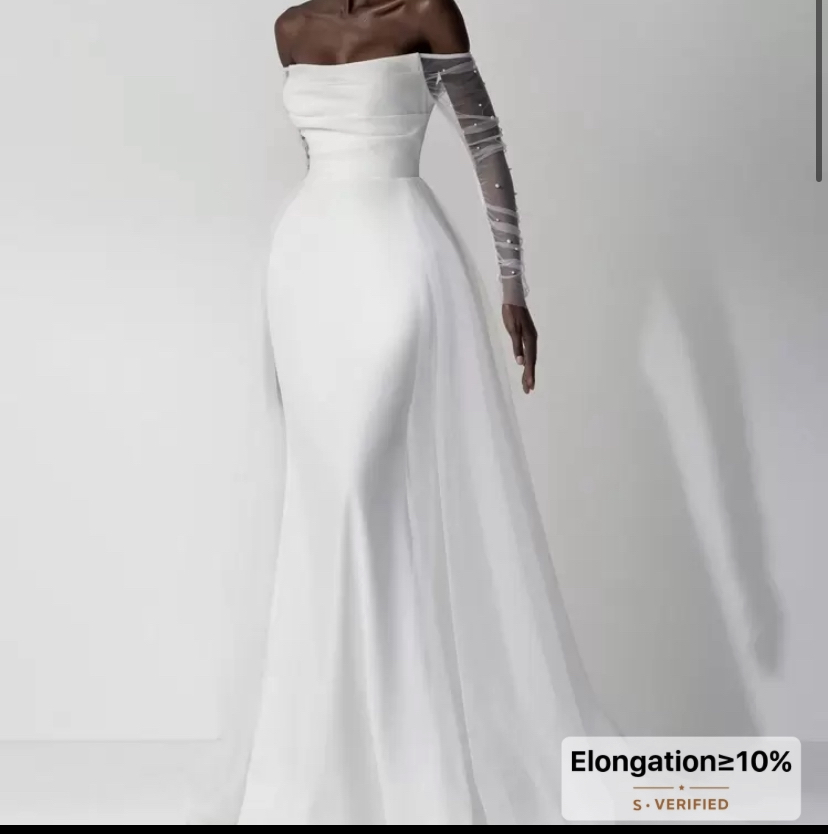 Elitara elegant luxurious bubble bead long sleeve wedding gown with jacket and detachable mesh gown