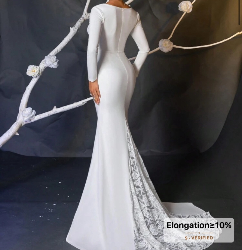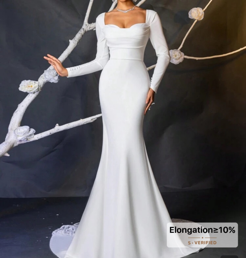 Glamrae elegant gorgeous luxurious and romantic white long sleeved stretch knitted pleated mermaid wedding gown