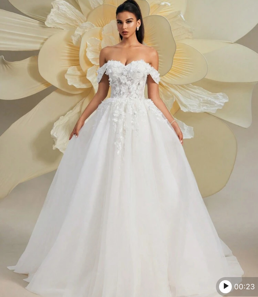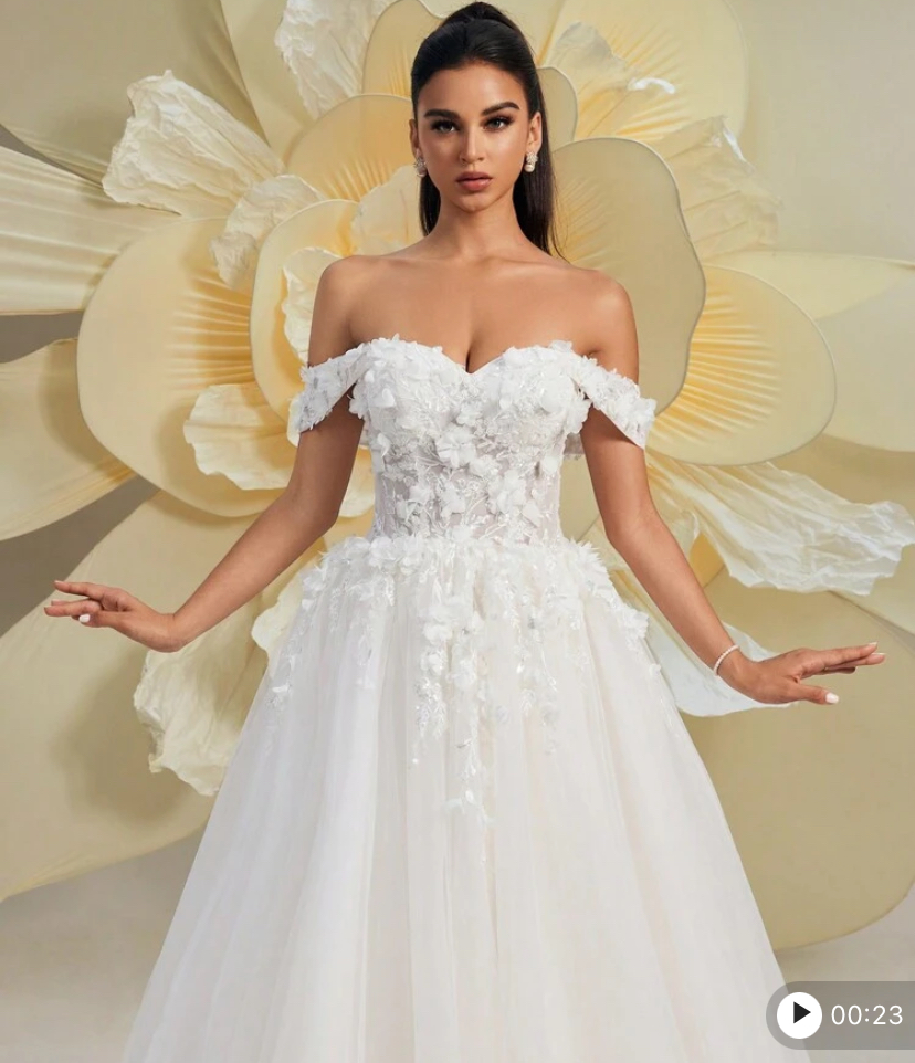 Hearbobo forest fairy off shoulder noble and romantic floral lace embroidery tulle puff wedding dress