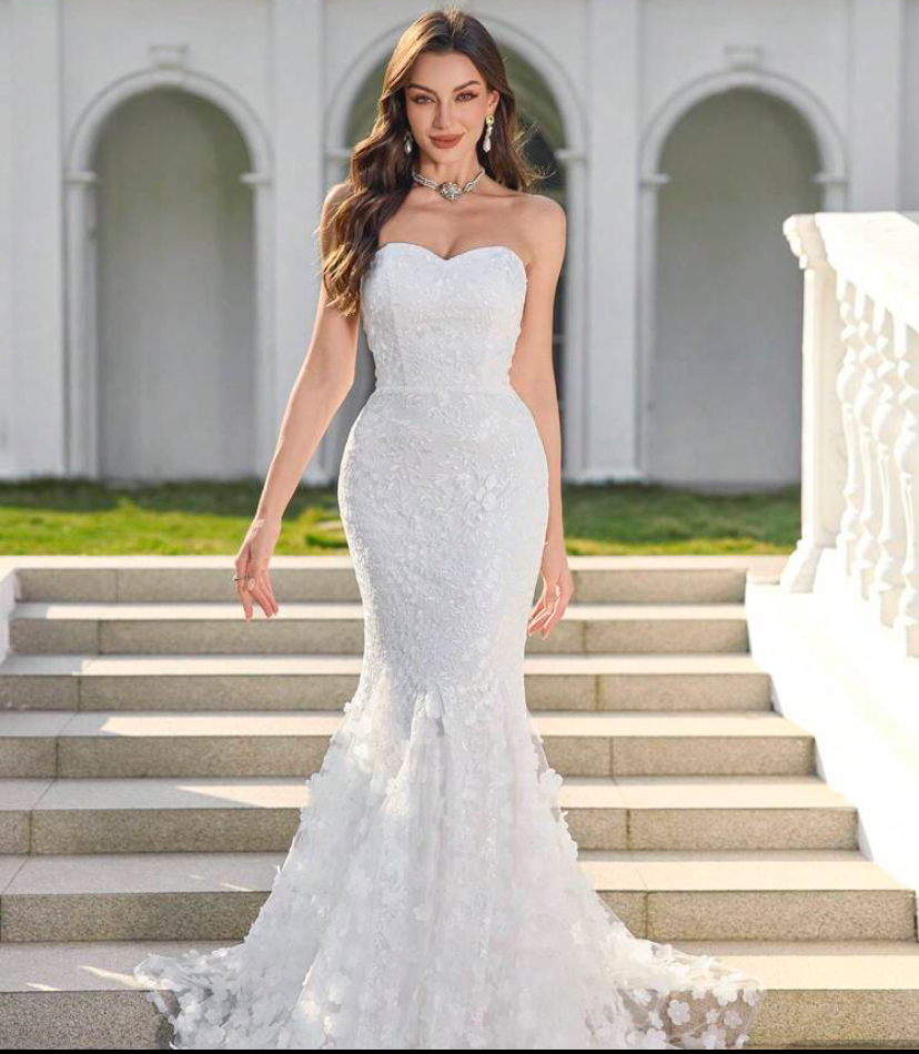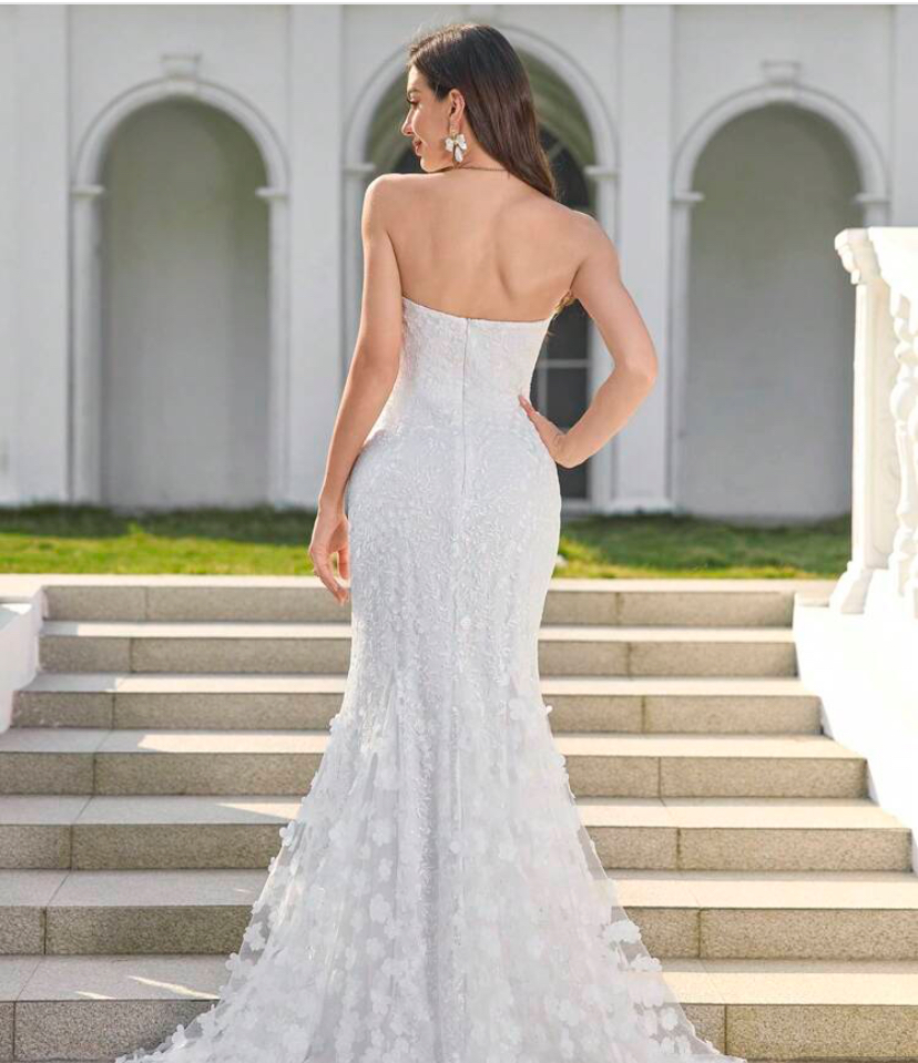 Unithorse women lace patchwork strapless backless elegant fish tail wedding dress