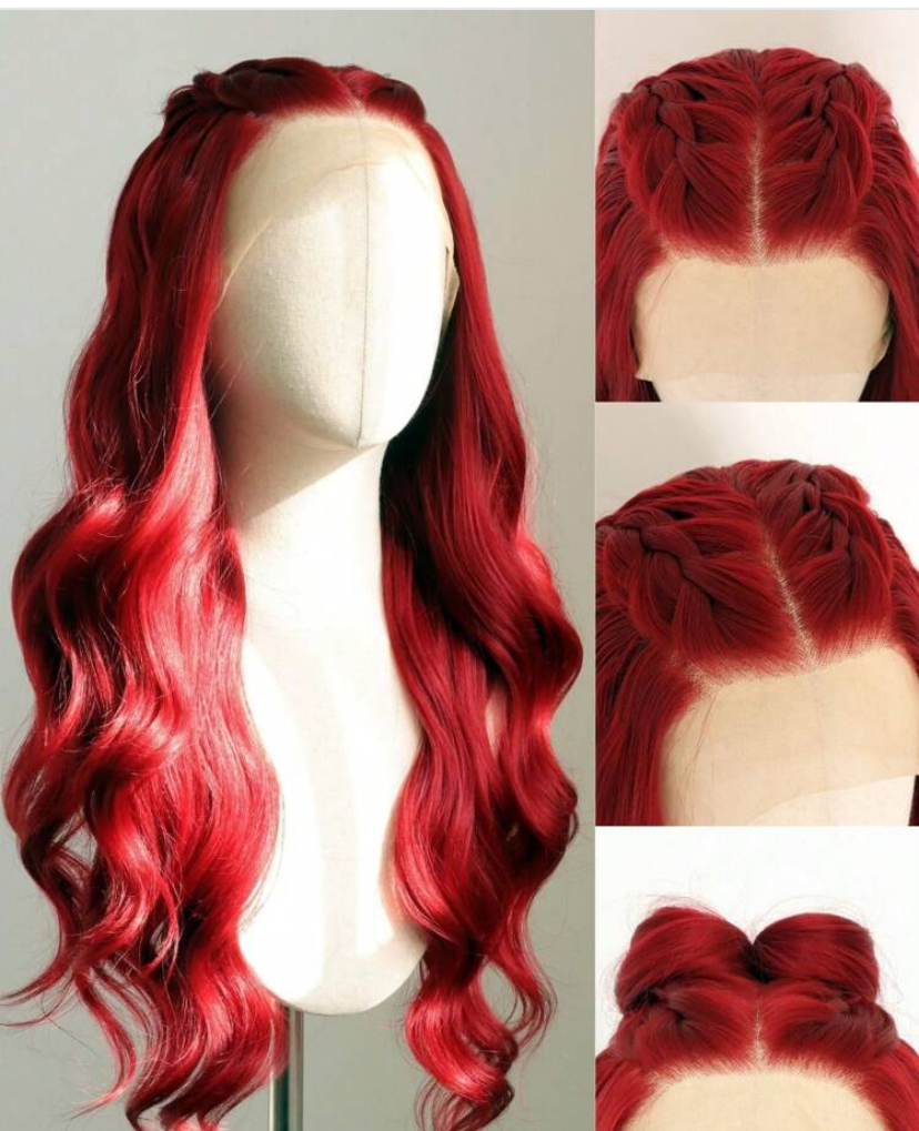 Sally well red long body wave lace wig 100% density