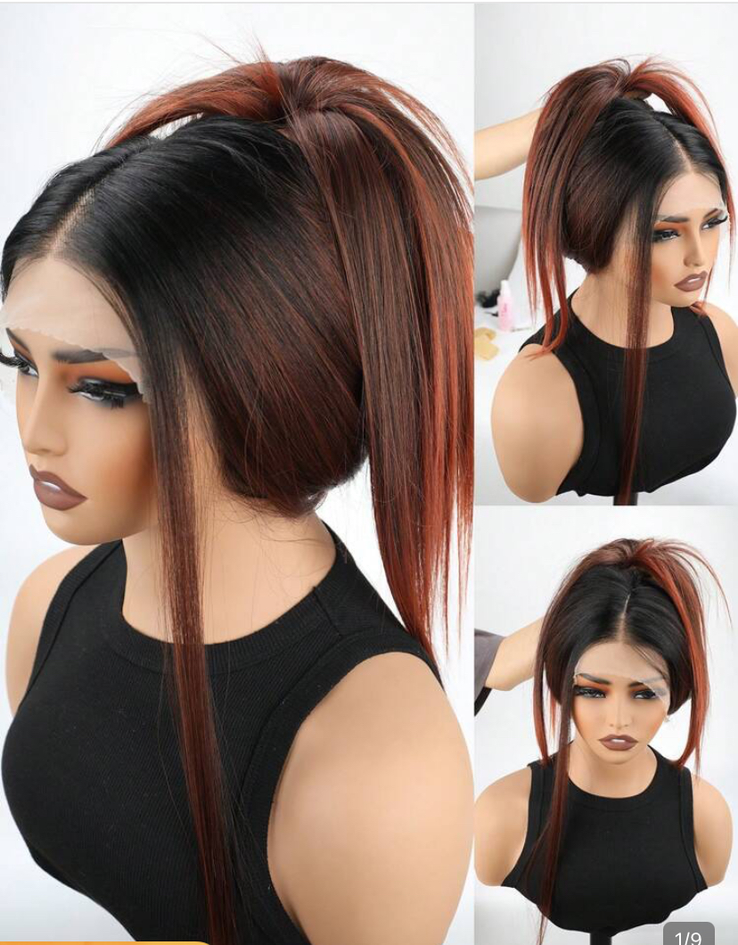 Ombré reddish brown synthetic 13 by 4 lace front wig